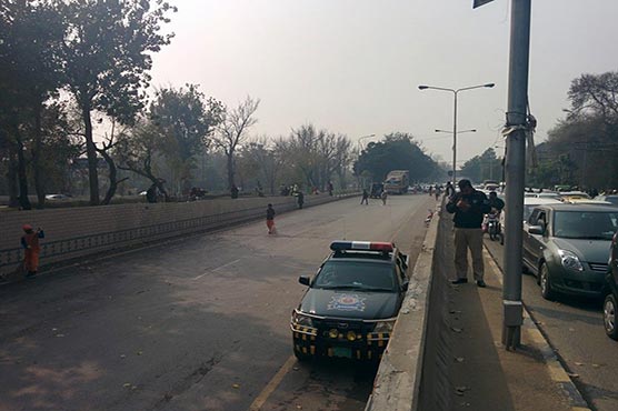 LAHORE (Dunya News) – Container stuck near Punjab University underpass that halted the traffic flow at Canal Road and adjoining road has been removed after four hours.